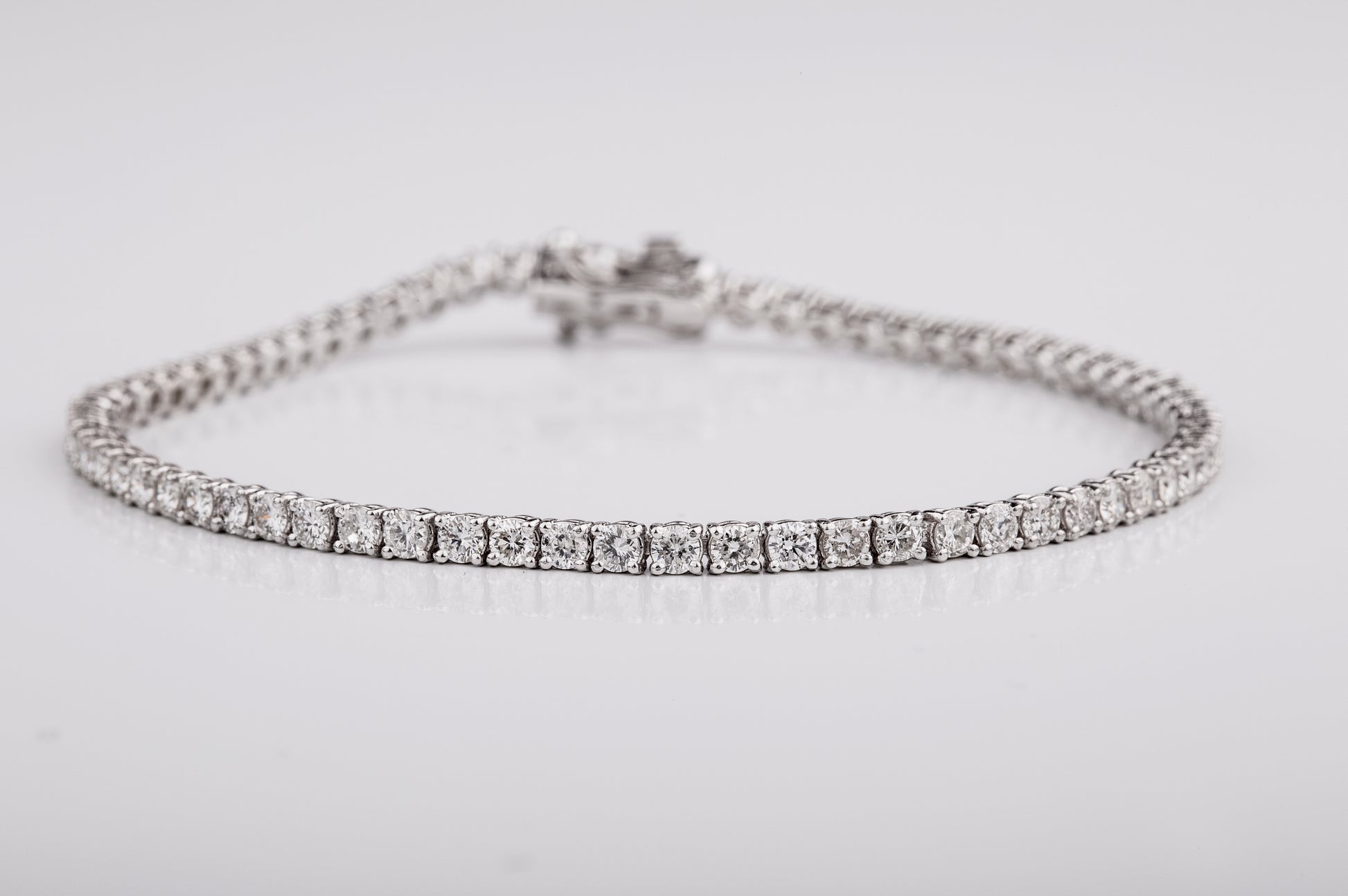 18ct white or yellow gold claw set diamond tennis bracelet.